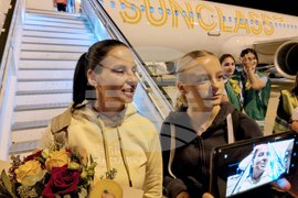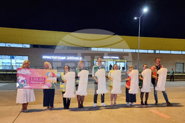 Варна (5 септември 2024) На Летище Варна тържествено посрещат 1 111 111 си пътник. Това е Он Ирен (вляво) от Норвегия, пристигнала на почивка в Златни пясъци със своето семейство. Тя каза, че за четвърти път е в България и много й харесва. За спомен дамата получи брандиран куфар.