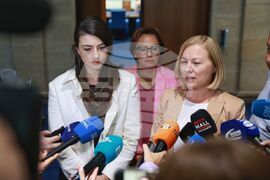София (5 септември 2024) Народни представители на партия „Продължаваме Промяната-Демократична България“ (ПП-ДБ) дават изявление за медиите в кулоарите на Народното събрание. На снимката: Надежда Йорданова.