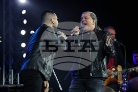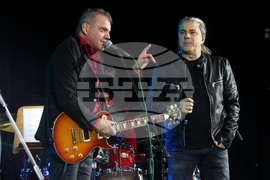 София (30 октомври 2024) Концерт на „Фондацията” в памет на Кирил Маричков се провежда днес в зала 1 на Националния дворец на културата (НДК). На снимката: На снимката: Атанас Пенев - Наско и Славчо Николов – вокал, китара от Б.Т.Р.