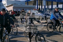 Видин (4 януари 2025) Около 100 участници отбелязват с велопоход по „Дунав мост 2“, приемането в Шенгенското пространство и по суша на двете държави България и Румъния. Българските граждани, сред които и деца, изминаха общо 17 км. на велосипеди по предварително определен маршрут от центъра на град Видин до крайната точка - центъра на Калафат. Велопоходът бе воден от кмета на Видин д-р Цветан Ценков (вляво).