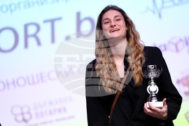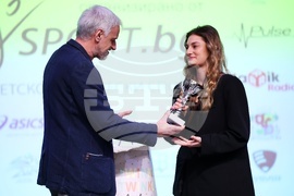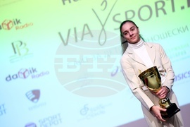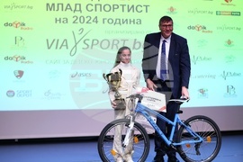 София (5 януари 2025) В театралната зала на частното училище „Свети Георги“ се провежда церемония по награждаването на “Най-добрия млад спортист на България до 19 г.” за 2024 г., организирана от сайта за детско-юношески спорт Viasport.bg и Фрий Медиа Груп ЕООД. На снимката: Награда получава Тимшел Костадинова (вдясно).