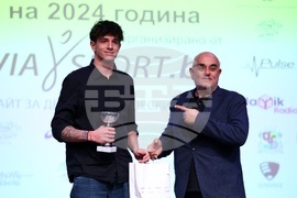 София (5 януари 2025) В театралната зала на частното училище „Свети Георги“ се провежда церемония по награждаването на “Най-добрия млад спортист на България до 19 г.” за 2024 г., организирана от сайта за детско-юношески спорт Viasport.bg и Фрий Медиа Груп ЕООД. На снимката: награда получава Максим Манолов (вляво) от Николай Кръстев.