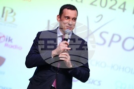 София (5 януари 2025) В театралната зала на частното училище „Свети Георги“ се провежда церемония по награждаването на “Най-добрия млад спортист на България до 19 г.” за 2024 г., организирана от сайта за детско-юношески спорт Viasport.bg и Фрий Медиа Груп ЕООД. На снимката: служебният министър на младежта и спорта Георги Глушков.