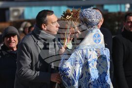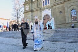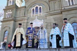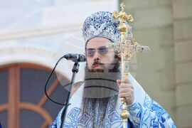 Бургас (6 януари 2025) Негово Високопреосвещенство Сливенският митрополит Арсений (на снимката) участва в празничния ритуал по повод празника Богоявление. Пред храм „Св. Св. Кирил и Методий” той и представители на бургаското духовенство благославят бойните знамена от Военен гарнизон - Бургас и отслужват водосвет и молебен за здраве на българската армия. Ритуалът преминава в литийно шествие по главните пешеходни улици на града.