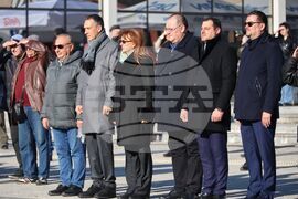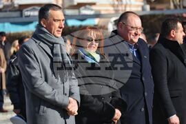 Бургас (6 януари 2025) Негово Високопреосвещенство Сливенският митрополит Арсений участва в празничния ритуал по повод празника Богоявление. Пред храм „Св. Св. Кирил и Методий” той и представители на бургаското духовенство благославят бойните знамена от Военен гарнизон - Бургас и отслужват водосвет и молебен за здраве на българската армия. Ритуалът преминава в литийно шествие по главните пешеходни улици на града. На снимката (от ляво надясно): кметът на Община Бургас Димитър Николов, областният управител на Бургас проф. д-р Мария Нейкова и представителят на Общински съвет Бургас Михаил Хаджиянев.
