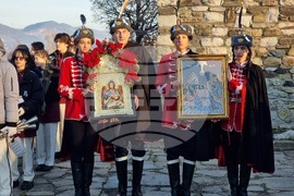 Кърджали (6 януари 2025) Пловдивският митрополит Николай оглави празничната литургия в манастир „Св. Йоан Предтеча“ в Кърджали. Той освети бойните знамена на военно формирование при Съвместното командване на специалните операции в Пловдив, ръководени от бригаден генерал Божидар Бойков. Сред присъстващите, освен стотиците миряни, бяха областният управител на Кърджали Никола Чанев, народният представител Цвета Караянчева, кметът Ерол Мюмюн и цялото общинско ръководство, свещеници. На снимката (от ляво надясно): началникът на военно окръжие в Кърджали подп. Николай Александров, заместник-кметът Даниел Делчев, народният представител Цвета Караянчева, кметът на Кърджали Ерол Мюмюн, пловдивският митрополит Николай и областният управител на Кърджали Никола Чанев.