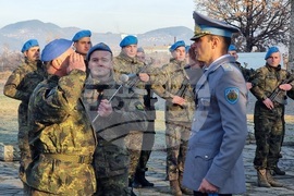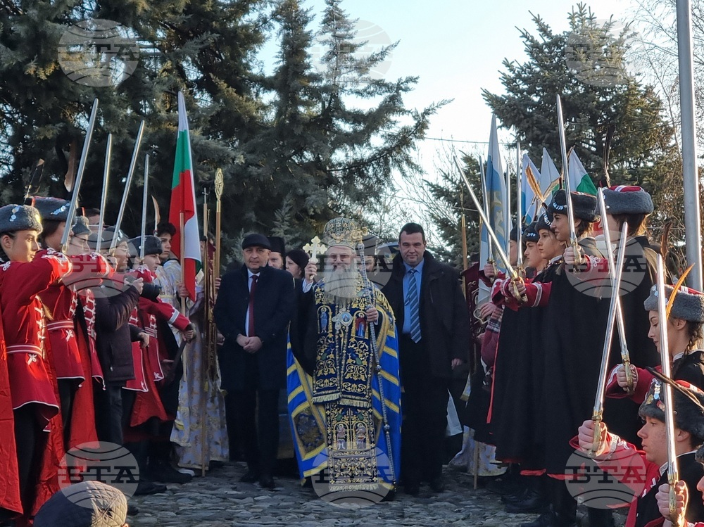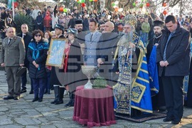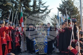 Кърджали (6 януари 2025) Пловдивският митрополит Николай оглави празничната литургия в манастир „Св. Йоан Предтеча“ в Кърджали. Той освети бойните знамена на военно формирование при Съвместното командване на специалните операции в Пловдив, ръководени от бригаден генерал Божидар Бойков. Сред присъстващите, освен стотиците миряни, бяха областният управител на Кърджали Никола Чанев, народният представител Цвета Караянчева, кметът Ерол Мюмюн и цялото общинско ръководство, свещеници. На снимката: през шпалира минават кметът на Кърджали Ерол Мюмюн, пловдивският митрополит Николай и областният управител на Кърджали Никола Чанев.