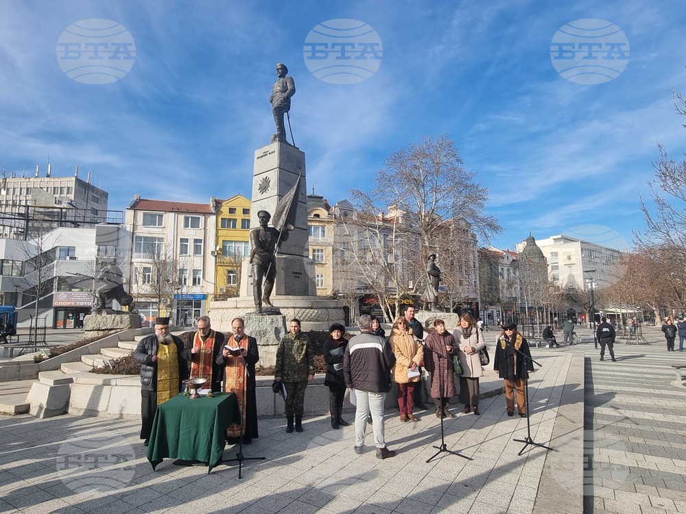 Плевен (6 януари 2025) В Плевен се състоя Богоявленски водосвет на бойните знамена в Плевенския гарнизон. Тази година ритуалът се проведе пред паметника на Девета пехотна плевенска дивизия на площад „Свободата“.