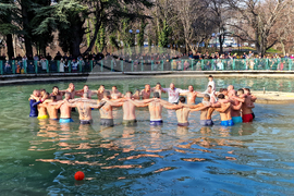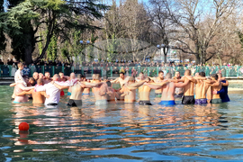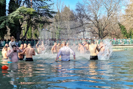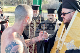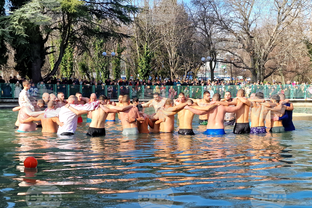 Стара Загора (6 януари 2025) Богоявленският водосвет на бойните знамена на военните формирования от Старозагорския гарнизон и ритуално хвърляне на кръста