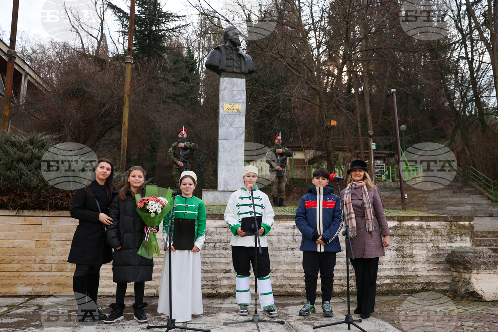 Благоевград (6 януари 2025) С полагане на цветя пред бюст-паметника на Христо Ботев в Благоевград се отбелязват 177 години от рождението на българския поет и революционер.