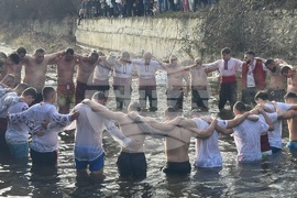 Казанлък (6 януари 2025) Въпреки студеното време традиционният богоявленски ритуал събра десетки казанлъчани край Старата река. Тази година във водите на реката за спасяване на богоявленския кръст влязоха 33-ма мъже, повечето от които спазват традицията за поредна година.