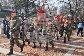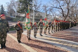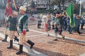 Шумен (6 януари 2025) На тържествена церемония до сградата на Драматично-кукления театър „Васил Друмев“ в Шумен празничен водосвет отслужи отец Красимир Капитанов и по традиция благослови и поръси със светена вода знамената на военните подразделения от Шуменския военен гарнизон, на местния клон на Националното дружество „Традиция“, на полкове и чети.