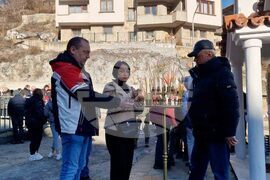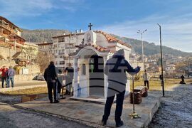 Смолян (6 януари 2025) На Йордановден по традиция стотици жители на Смолян се събраха на моста на река Бяла в квартал Устово. Младежите от Сдружение „Родопски хайдути" поведоха литийното шествие с портрета на Христо Ботев, което тръгна от църквата „Свети Николай Чудотворец“. За десети път Васил Марински (на снимката) хвана богоявленския кръст.