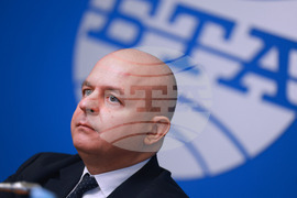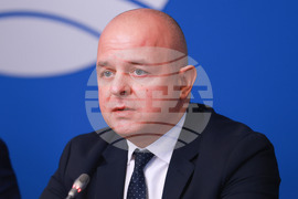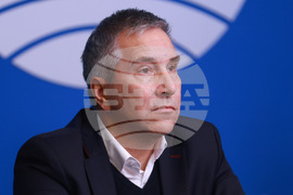 София (9 януари 2025) Национално представителните организации на работодателите и на работниците и служителите провеждат пресконференция във връзка с необходимостта от спешни мерки за ограничаване на щетите за българската икономика от скока на цените на електроенергията и другите енергоносители. Събитието се провежда в Националния пресклуб на БТА в София. На снимката: вицепрезидентът на Конфедерацията на труда „Подкрепа” Йоанис Партениотис.