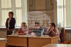 Свищов (9 януари 2025) В аулата на Професионална държавна търговска гимназия (ПДТГ) „Димитър Хадживасилев“ в Свищов бе организирана образователна инициатива „130 години - Организирано туристическо движение в България“. В нея се включиха ученици от начален и прогимназиален етап от свищовските училища. На снимката: директорът на ПДТГ „Димитър Хадживасилев“ Лиляна Димитрова (в средата).
