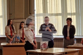 Свищов (9 януари 2025) В аулата на Професионална държавна търговска гимназия (ПДТГ) „Димитър Хадживасилев“ в Свищов бе организирана образователна инициатива „130 години - Организирано туристическо движение в България“. В нея се включиха ученици от начален и прогимназиален етап от свищовските училища. На снимката: кметът на община Свищов д-р Генчо Генчев (в средата).