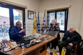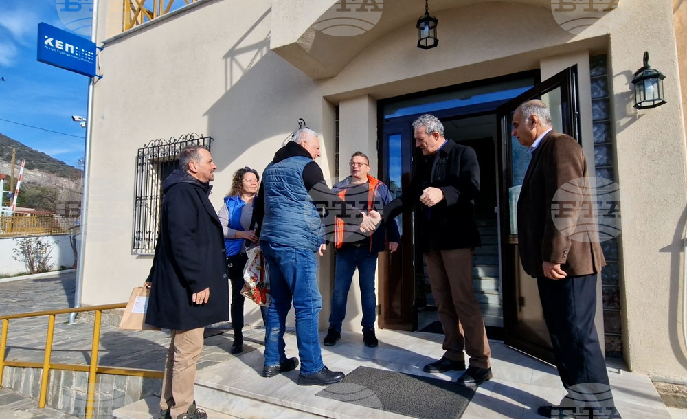 Паранести (9 януари 2025) Представители на неправителствени организации и институции от родопските села Могилица и Смилян проведоха среща с кмета на съседната гръцка община Паранести, обсъждайки възможностите да се изгради път за туристически достъп от Горна Арда до Паранести. Жителите на смолянските села стигнаха до гръцките си съседи, преминавайки свободно през границата по близо 30 км черен път. На снимката: Кметът на Паранести Анастасиос Кагиаоглу се среща с жители на пограничните смолянски села.