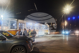 София (9 януари 2025) Аварирал автомобил затруднява движението но пл. „Възраждане“ в София.