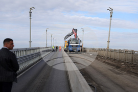 Русе (10 януари 2025) Пълноправното ни приемане в Шенген е достижение на много правителства и на много екипи, и няма да допуснем в това да се сложи лъжица катран, каза служебният премиер Димитър Главчев, който посети днес граничния контролно-пропускателния пункт (ГКПП) „Дунав мост” при Русе. Главчев е придружаван от служебните министри на регионалното развитие и благоустройството Виолета Коритарова (вдясно) и на транспорта и съобщенията Красимира Стоянова (вляво).