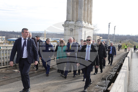 Русе (10 януари 2025) Пълноправното ни приемане в Шенген е достижение на много правителства и на много екипи, и няма да допуснем в това да се сложи лъжица катран, каза служебният премиер Димитър Главчев (в средата), който посети днес граничния контролно-пропускателния пункт (ГКПП) „Дунав мост” при Русе. Главчев е придружаван от служебните министри на регионалното развитие и благоустройството Виолета Коритарова и на транспорта и съобщенията Красимира Стоянова.