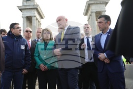 Русе (10 януари 2025) Пълноправното ни приемане в Шенген е достижение на много правителства и на много екипи, и няма да допуснем в това да се сложи лъжица катран, каза служебният премиер Димитър Главчев (вдясно), който посети днес граничния контролно-пропускателния пункт (ГКПП) „Дунав мост” при Русе. Главчев е придружаван от служебните министри на регионалното развитие и благоустройството Виолета Коритарова (в средата) и на транспорта и съобщенията Красимира Стоянова. На снимката: областният управител на Русе Драгомир Драганов (втори отдясно).