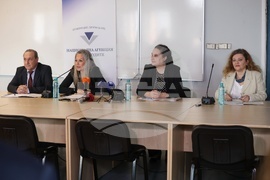 София (10 януари 2025) Националната агенция за приходите (НАП) дава пресконференция по повод старта на Данъчна кампания в зала 610 в сградата на централното управление на НАП. На снимката (от ляво надясно): директорът на дирекция Данъчна осигурителна методология" Росен Иванов, директорът на дирекция „Комуникации" Анна Митова, директорът на дирекция „Обслужване" Боряна Георгиева и Галина Иванова.