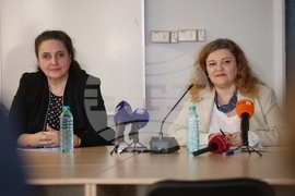 София (10 януари 2025) Националната агенция за приходите (НАП) дава пресконференция по повод старта на Данъчна кампания в зала 610 в сградата на централното управление на НАП. На снимката: директорът на дирекция „Обслужване" Боряна Георгиева и Галина Иванова (вдясно).