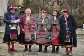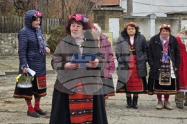 Село Радювене (12 януари 2025) Самодейци от Народно читалище "Полк. Стоян Едрев - 1895 г." в село Радювене, община Ловеч, пресъздават обичая "Дойлада", с който се нарича за женитба. На снимката: Емилия Вълкова разказва за обичая "Дойлада".