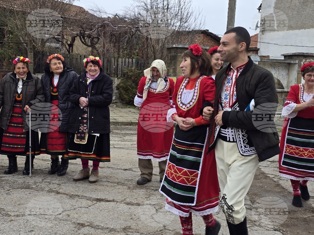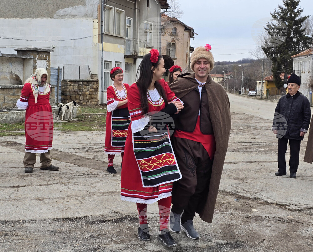 Село Радювене (12 януари 2025) Самодейци от Народно читалище "Полк. Стоян Едрев - 1895 г." в село Радювене, община Ловеч, пресъздават обичая "Дойлада", с който се нарича за женитба.