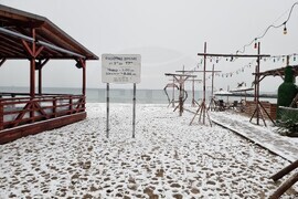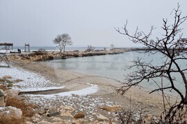 Варна (12 януари 2025) Сняг заваля и натрупа в Морската градина във Варна, както и по брега, където зимуват представители на птичия свят.