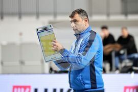 Бургас (12 януари 2025) В Спортна зала "Арена Бургас" се провежда финален двубой за Купата на България по волейбол. Един срещу друг се изправят мъжките волейболни отбори на "Левски София" и "Монтана Волей". На снимката: старши треньорът на "Левски София" Николай Желязков.