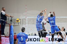 Бургас (12 януари 2025) В Спортна зала "Арена Бургас" се провежда финален двубой за Купата на България по волейбол. Един срещу друг се изправят мъжките волейболни отбори на "Левски София" и "Монтана Волей". На снимката: отборът на "Левски София".