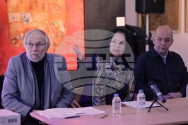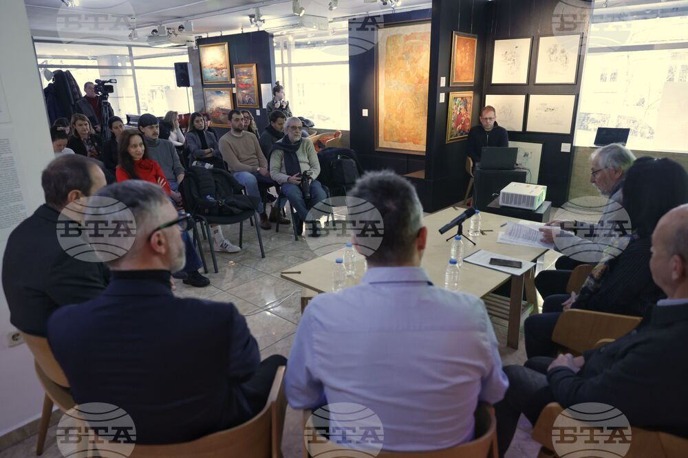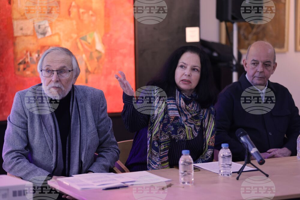 София (13 януари 2025) Министерството на културата, Камарата на архитектите в България (КАБ) и Съюзът на архитектите в България (САБ) представят на пресконференция в галерия „Средец“ резултатите от конкурса за български павилион на Венецианското архитектурно биенале през 2025 г. На снимката (от ляво надясно): председателят на журито и председател на УС на КАБ арх. Владимир Милков, директорът на Дирекция „Културно наследство, музеи и изобразителни изкуства“ в МК Екатерина Джумалиева и арх. Тодор Обрешков, член на САБ и КАБ и член на журито.