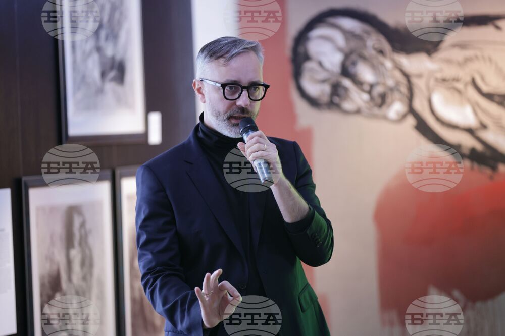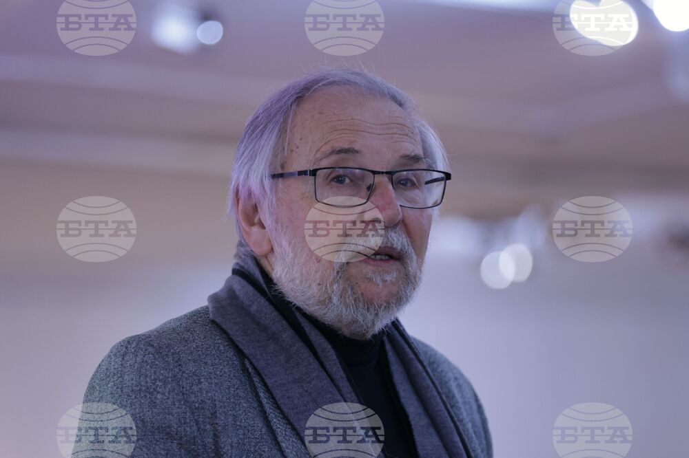 София (13 януари 2025) Министерството на културата, Камарата на архитектите в България (КАБ) и Съюзът на архитектите в България (САБ) представят на пресконференция в галерия „Средец“ резултатите от конкурса за български павилион на Венецианското архитектурно биенале през 2025 г. На снимката: арх. Александър Стайнов, държавен експерт, национален комисар за участието на Република България във Венецианското биенале за архитектура през 2025 г.