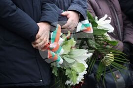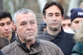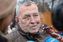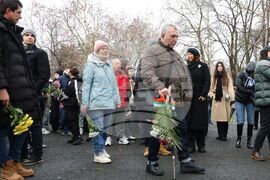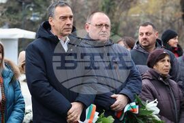 Бургас (13 януари 2025) Днес се навършват 100 години от рождението на българския актьор Георги Калоянчев (роден на 13 януари 1925г. - починал на 18 декември 2012г.). Годишнината се отбелязва с отдаване на почит и полагане на цветя пред паметника на актьора, разположен до Летния театър в Морската градина на Бургас. На снимката: сред официалните гости са председателят на Съюза на артистите в България Христо Мутафчиев (ляво) и директорът на Драматичен театър "Адриана Будевска" Бургас Иля Пепеланов (на заден план).