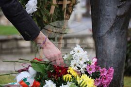 Бургас (13 януари 2025) Днес се навършват 100 години от рождението на българския актьор Георги Калоянчев (роден на 13 януари 1925г. - починал на 18 декември 2012г.). Годишнината се отбелязва с отдаване на почит и полагане на цветя пред паметника на актьора, разположен до Летния театър в Морската градина на Бургас. На снимката: директорът на Драматичен театър "Адриана Будевска" Бургас Иля Пепеланов.
