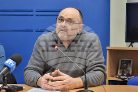 Плевен (13 януари 2025) В Националния пресклуб на БТА в Плевен се състои пресконференция на общински съветници от Общински съвет - Плевен. Темата е проблемът с безводието в града и възможността за неговото решаване. На снимката: арх. Красимир Попов.