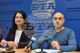 Плевен (13 януари 2025) В Националния пресклуб на БТА в Плевен се състои пресконференция на общински съветници от Общински съвет - Плевен. Темата е проблемът с безводието в града и възможността за неговото решаване. На снимката (от ляво надясно): Наталия Цанева и Людмил Софрониев от Общински съвет - Плевен.
