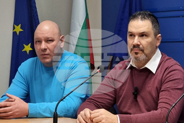 Плевен (13 януари 2025) В Националния пресклуб на БТА в Плевен се състои пресконференция на общински съветници от Общински съвет - Плевен. Темата е проблемът с безводието в града и възможността за неговото решаване. На снимката (от ляво надясно): Герасим Петков и Чавдар Христанов от Общински съвет - Плевен.