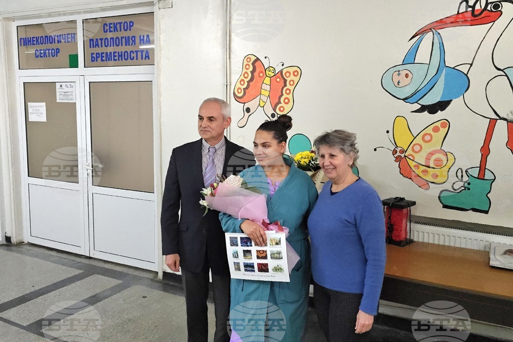 Видин (13 януари 2025) Първото бебе за 2025 г. за община Видин е момиче - Яна, родена на осми януари с тегло три килограма и 280 грама. Това бе и поводът за посещението на общинското ръководство в акушеро-гинекологичното отделение. По традиция, която се спазва от години, на първото новородено за община Видин бебе се поднася подарък от кмета на общината - красив букет и парична помощ. От името на д-р Цветан Ценков бе изказана благодарност към лекарския екип и акушерите, които са спомогнали за даването на още един нов живот във Видин. На снимката: майката на бебето Богдана.