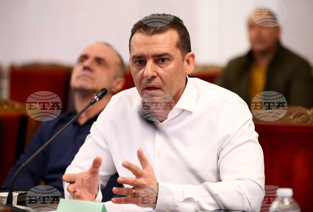 София (14 януари 2025) Кръгла маса по въпроса с водния режим в някои населени места, организирана от партия „Възраждане”, се провежда в сградата на Народното събрание. На снимката: управителят на ВиК-Петрич Ивайло Христов.