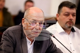София (14 януари 2025) Кръгла маса по въпроса с водния режим в някои населени места, организирана от партия „Възраждане”, се провежда в сградата на Народното събрание. На снимката: управителят на ВиК-Паничище Петър Василев .