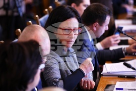 София (14 януари 2025) Комисията по конституционни и правни въпроси провежда заседание в сградата на Народното събрание. На снимката: служебният министър на правосъдието Мария Павлова.