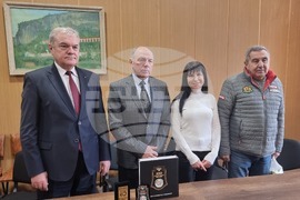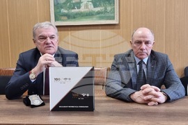 Плевен (14 януари 2025) Регионалният исторически музей в Плевен получи като дарение книга, посветена на 100-годишнината на българския мотоциклетен спорт и на Българската федерация по мотоциклетизъм (БФМ) и юбилеен плакет. То бе предоставено от състезателя по мотоциклетизъм и дългогодишен председател на федерацията Богдан Николов и Румен Петков, който бе председател на Организационния комитет на Гран При България при БФМ. На снимката: екземпляр от книгата и юбилеен плакет бяха предоставени и на Националния пресклуб на БТА в Плевен.