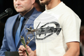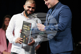 Русе (14 януари 2025) На официална церемония бяха връчени наградите „Спортист на годината” за 2024 в Русе, които са определени чрез анкета на спортните журналисти в града, организирана от местния вестник „Утро” и Община Русе. Втори в анкетата се нареди състезателят по вдигане на тежести от тежкоатлетическия спортен клуб „Русе” Ангел Русев (вляво). Той е европейски шампион за мъже по вдигане на тежести в София, трети на европейското първенство за състезатели до 23 години, шести на световното по вдигане на тежести за мъже в Бахрейн. Наградата връчва кметът на Русе Пенчо Милков.