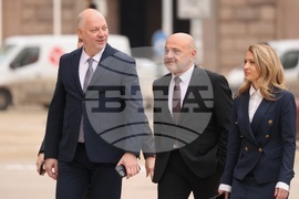 София (15 януари 2024) Представители на ГЕРБ-СДС пристигат в Президентството за получаване на мандат за съставяне на правителство. На снимката (от ляво надясно): Росен Желязков, Томислав Дончев и Рая Назарян.