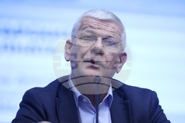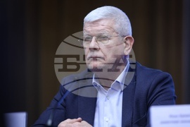 София (15 януари 2025) В Аула Максима на УНСС се провежда кръгла маса на тема "Достъпът до пазара за българските производители по агрохранителната верига" под егидата на ректора проф. д-р Димитър Димитров и по инициатива на акад. Атанас Атанасов и бившия министър на земеделието Кирил Вътев (на снимката).