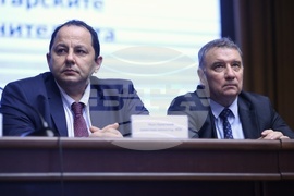 София (15 януари 2025) В Аула Максима на УНСС се провежда кръгла маса на тема "Достъпът до пазара за българските производители по агрохранителната верига" под егидата на ректора проф. д-р Димитър Димитров и по инициатива на акад. Атанас Атанасов и бившия министър на земеделието Кирил Вътев. На снимката: заместник-министърът на земеделието и храните Иван Капитанов (вляво), ректорът на УНСС проф. д-р Димитър Димитров (вдясно).
