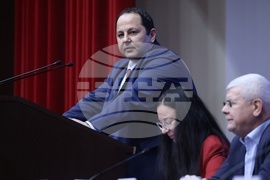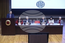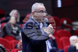 София (15 януари 2025) В Аула Максима на УНСС се провежда кръгла маса на тема "Достъпът до пазара за българските производители по агрохранителната верига" под егидата на ректора проф. д-р Димитър Димитров и по инициатива на акад. Атанас Атанасов и бившия министър на земеделието Кирил Вътев. На снимката: