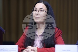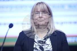 София (15 януари 2025) В Аула "Максима" на Университета за национално и световно стопанство (УНСС) се провежда кръгла маса на тема "Достъпът до пазара за българските производители по агрохранителната верига" под егидата на ректора проф. д-р Димитър Димитров и по инициатива на акад. Атанас Атанасов и бившия министър на земеделието Кирил Вътев. На снимката: Елка Божилова, Дирекция "Политики по агрохранителната верига" МЗХ.